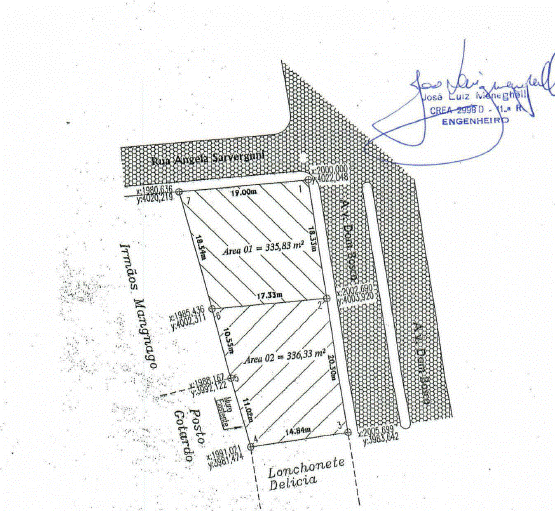 direito de 17,33 m com área 02, pelo lado esquerdo de 19,00 m com a Rua Ângela Savergnini e fundos de 18,54 m com Irmãos Magnago.
