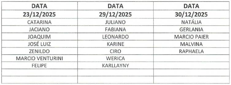 ESCALA RECESSO 2025